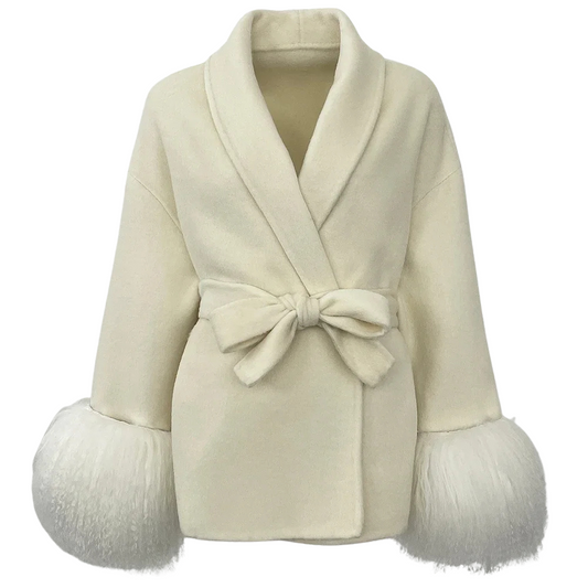 • 2025 Overcoat Fox Fur Wool Coat Patchwork Woolen Coat Beautiful Mongolian Fur Women Wool Jacket Autumn Winter Women's Cold Coat