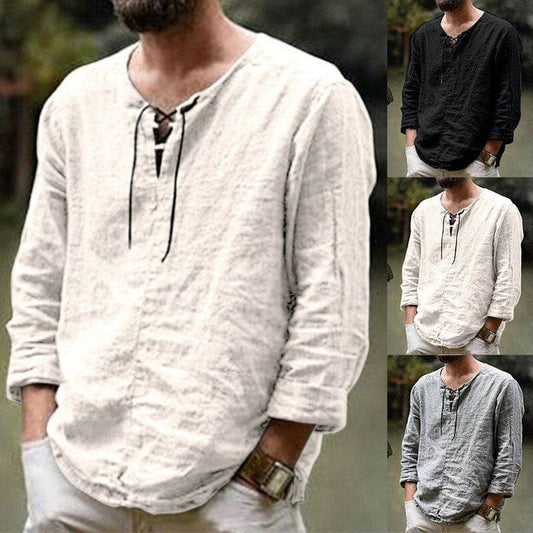 Axel | Klassisk linne Henley-skjorta med snörad halsringning för män