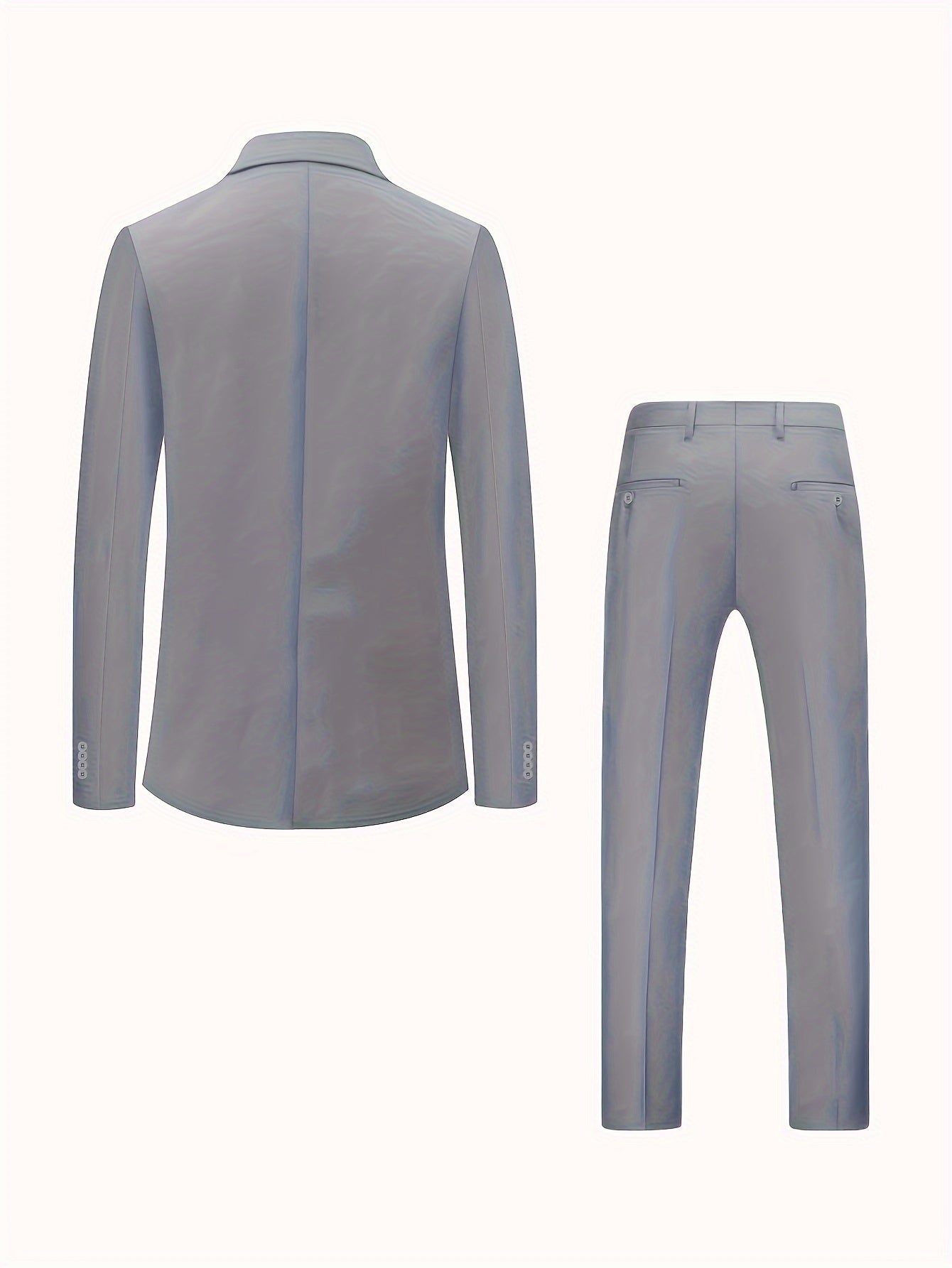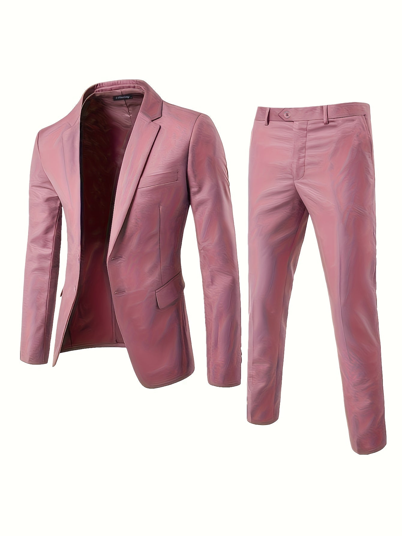 Upplev Alvar™, den ultimata tvådelade sommarkostymen för herr som kombinerar modern elegans och komfort. Den skräddarsydda slim fit-kavajen med en knapp och matchande byxor ger en stilren silhuett som passar perfekt för bröllop, sommarfester och eleganta kvällar.