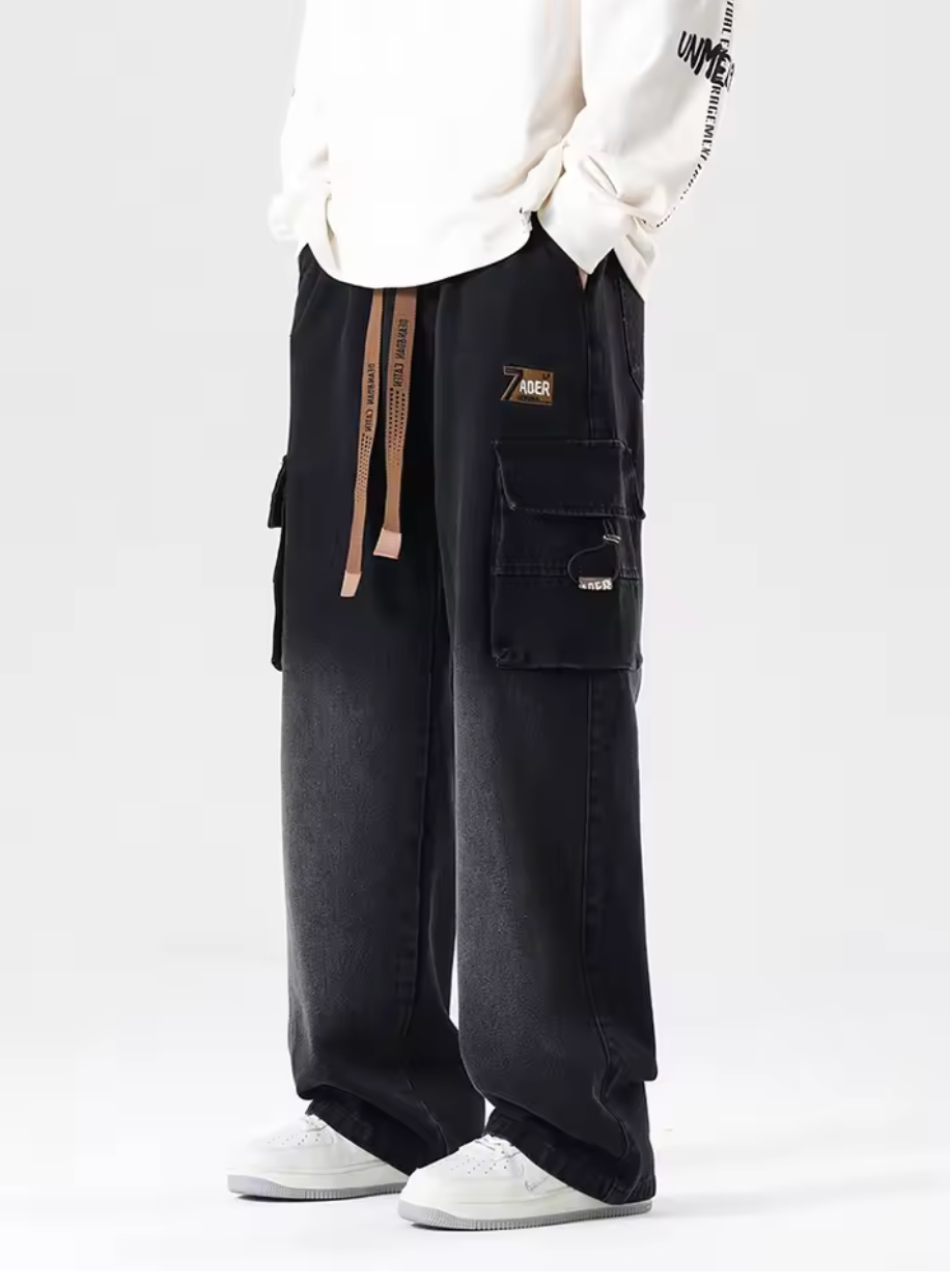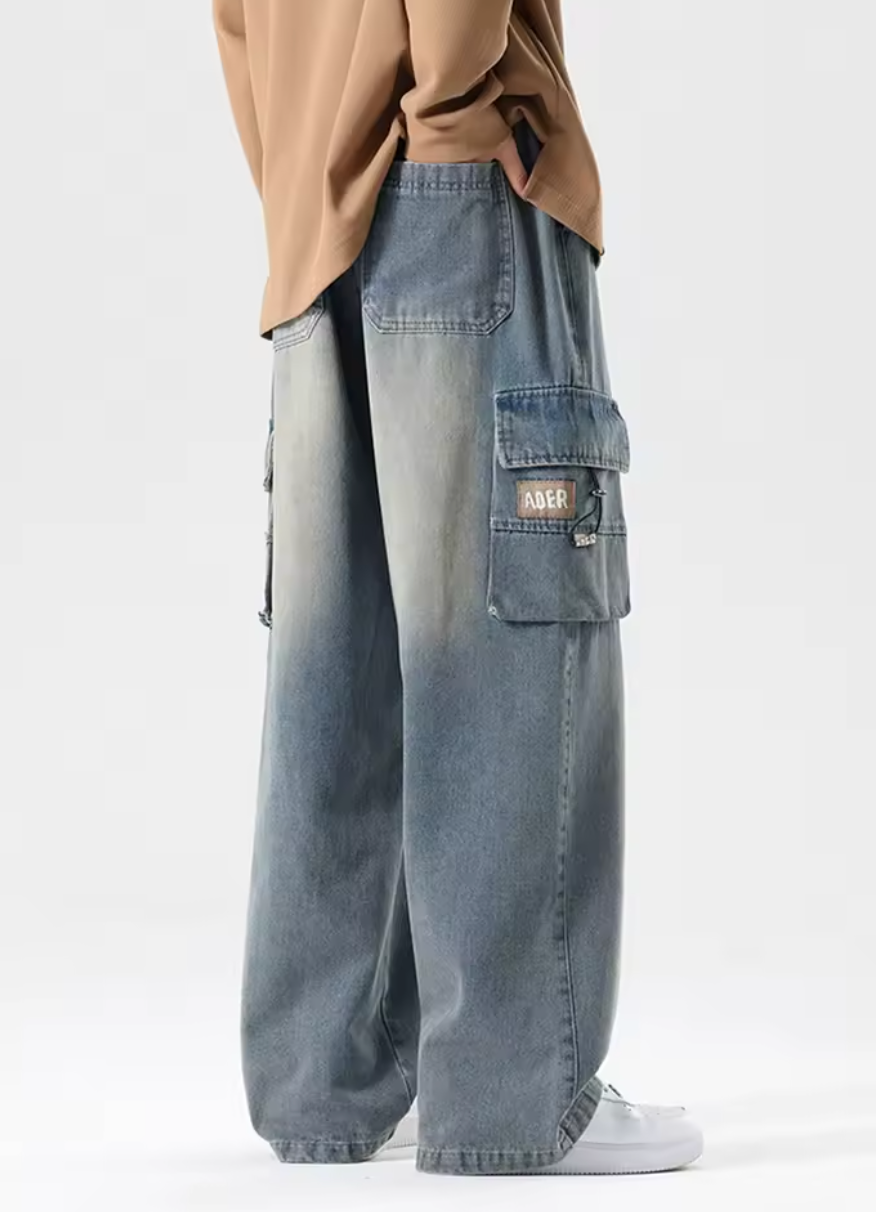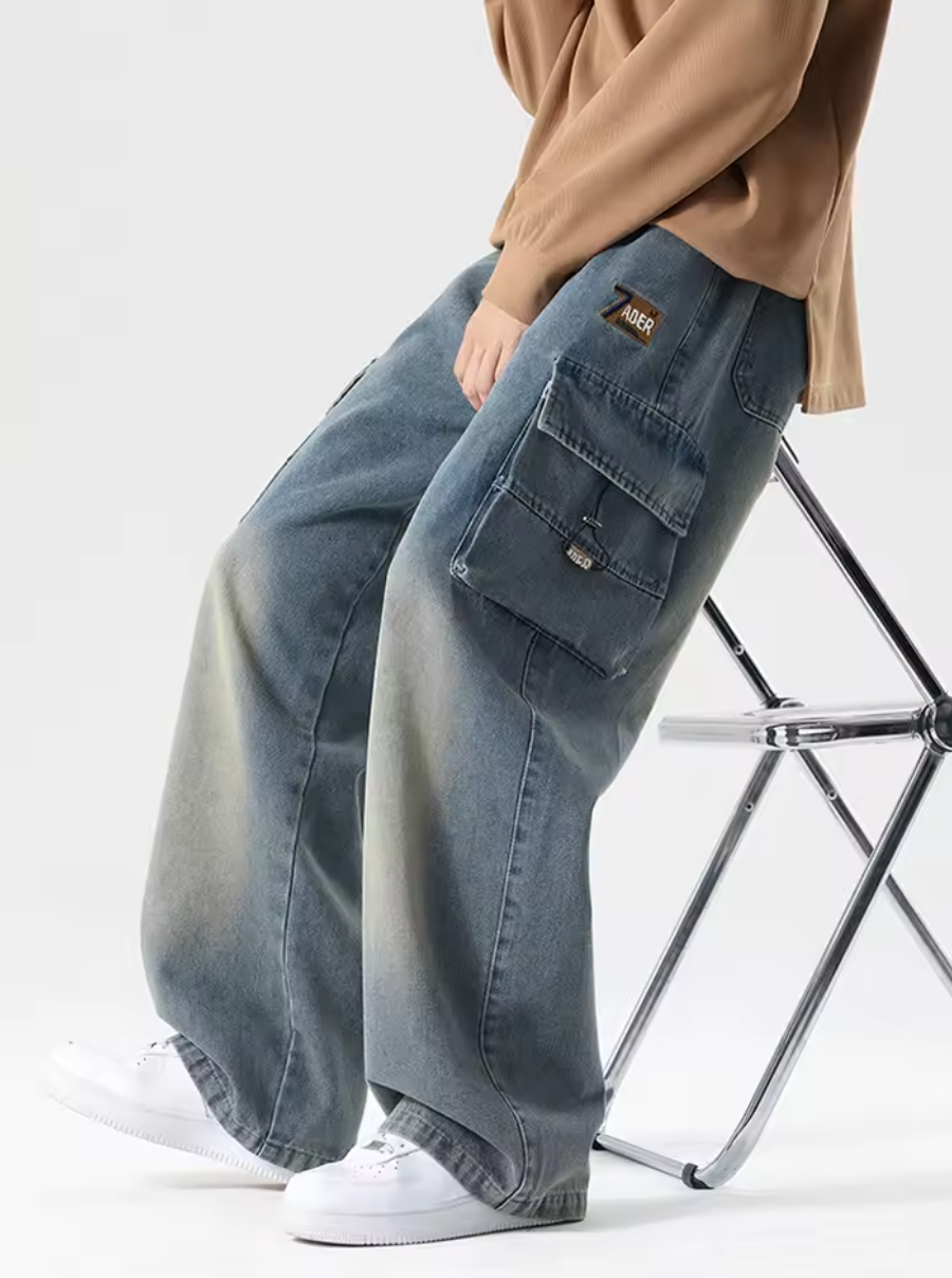 Lyft din vardagsstil med dessa breda cargobyxor i denim – perfekta för dig som gillar streetwear med en praktisk twist. Den avslappnade, löst sittande passformen ger maximal komfort och rörelsefrihet, samtidigt som designen med rejäla cargofickor och subtila tvätteffekter ger ett snyggt, genomtänkt uttryck.