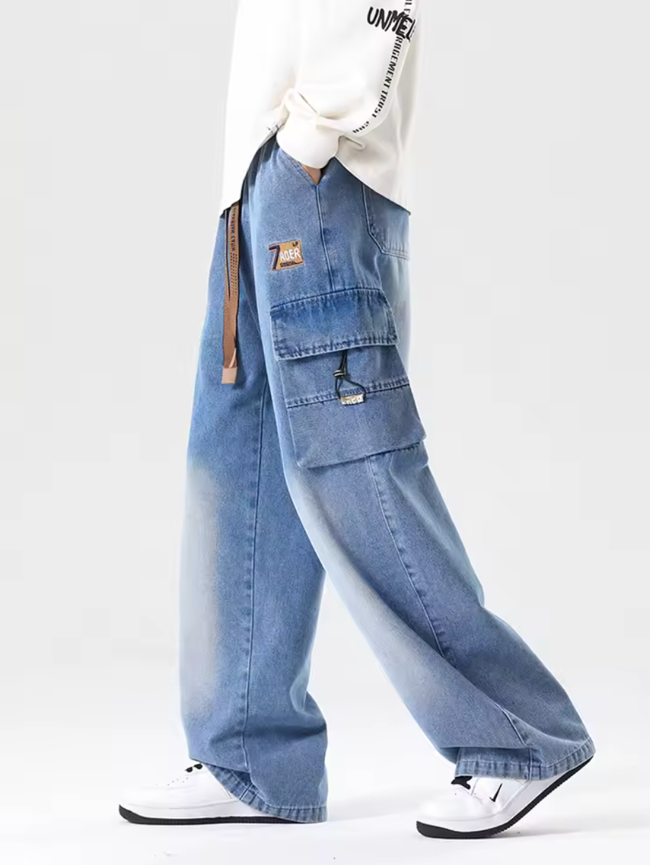 Baggy Cargobyxa i Denim – Avslappnad Streetwear med Funktionell Stil