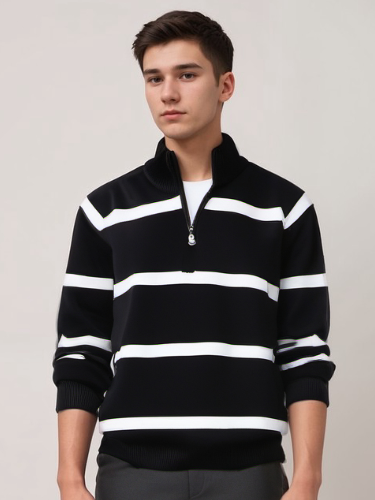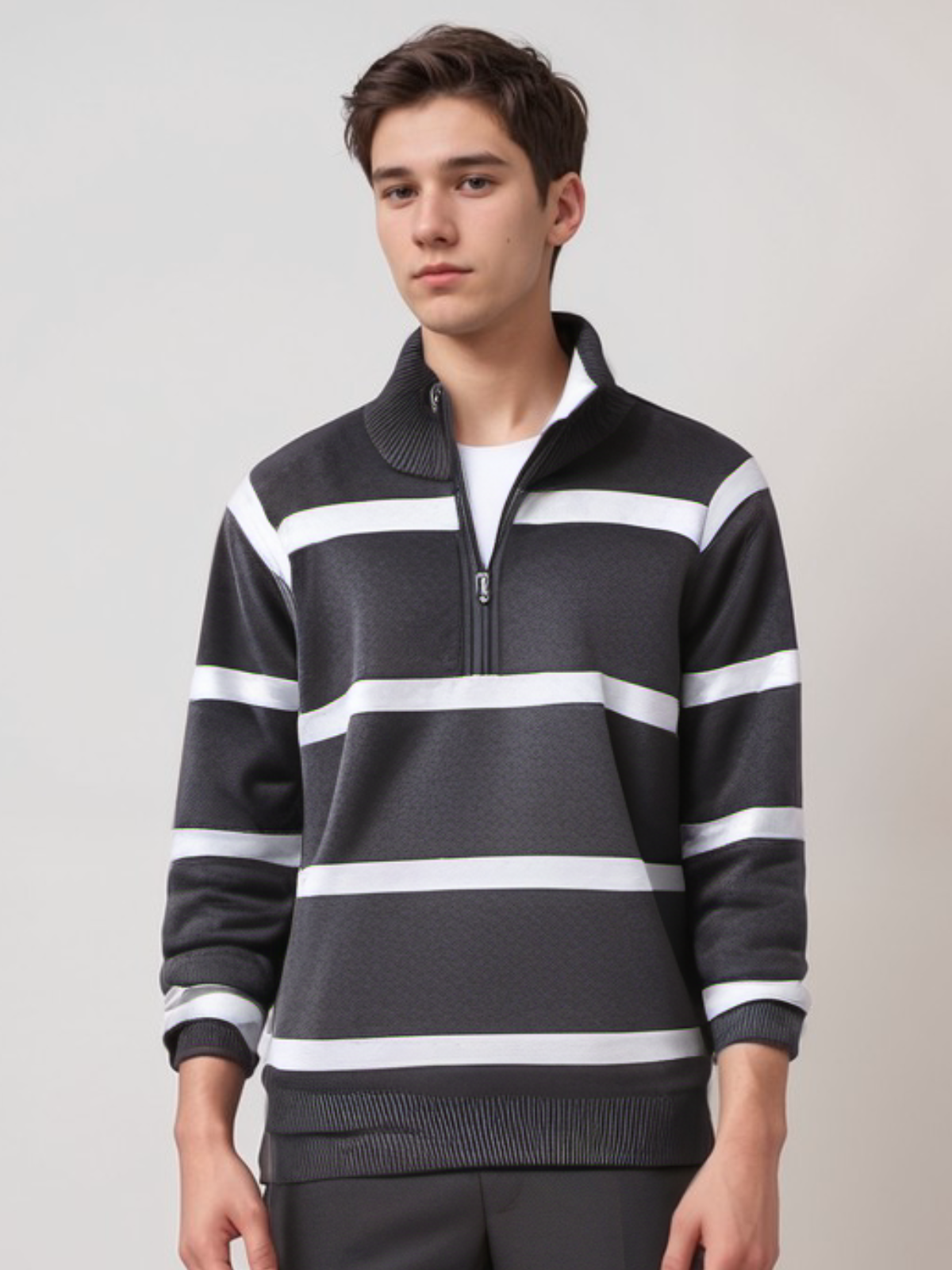 Bekväm Bomsrandig Tröja Med Dragkedja För Herr | Perfekt för Höst/Vinter