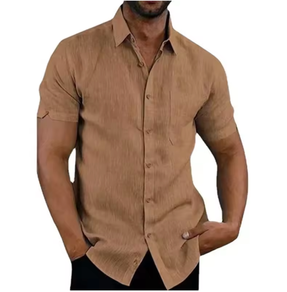 Breeze Linen Skjorta – Kortärmad Herrskjorta i Naturfärgade Toner