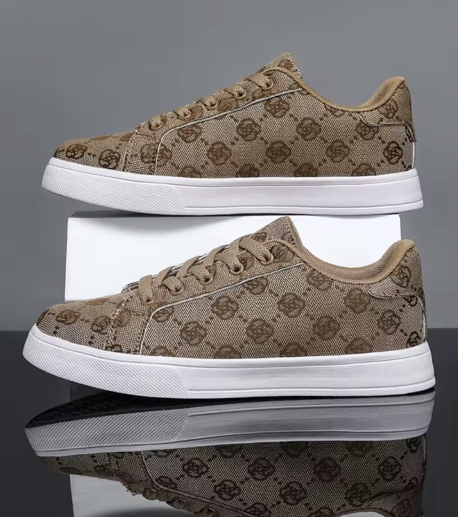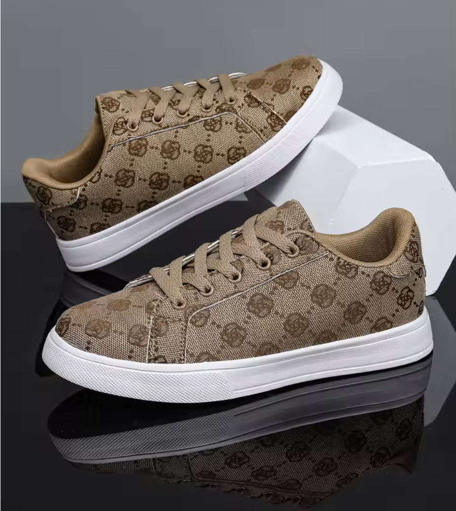 Ge din look en stilren boost med dessa trendiga sneakers i klassisk låg modell. Tillverkade i slitstark canvas med ett snyggt all-over print i brunt, får du både karaktär och komfort i ett och samma par skor. Den robusta gummisulan ger skön dämpning och stadigt grepp oavsett underlag – perfekt för en aktiv vardag eller helgens äventyr.