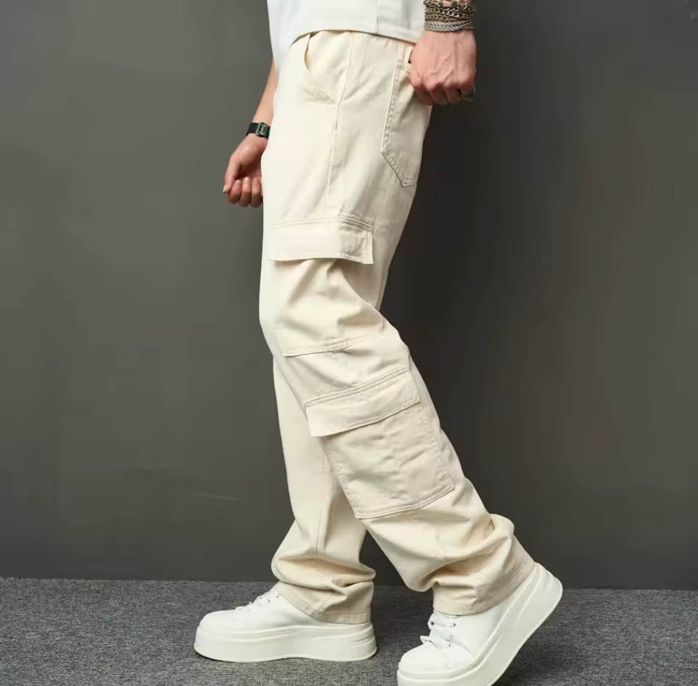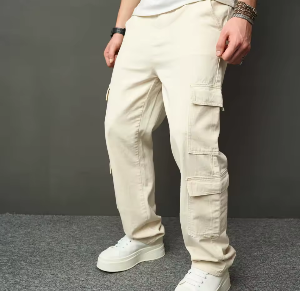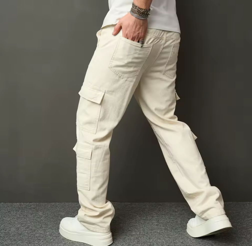 Dessa beige cargo-byxor är den perfekta mixen av streetwear och funktionalitet. För grabbar som vill ha en avslappnad men trendig look, oavsett om det är till vardags eller en kväll ute.