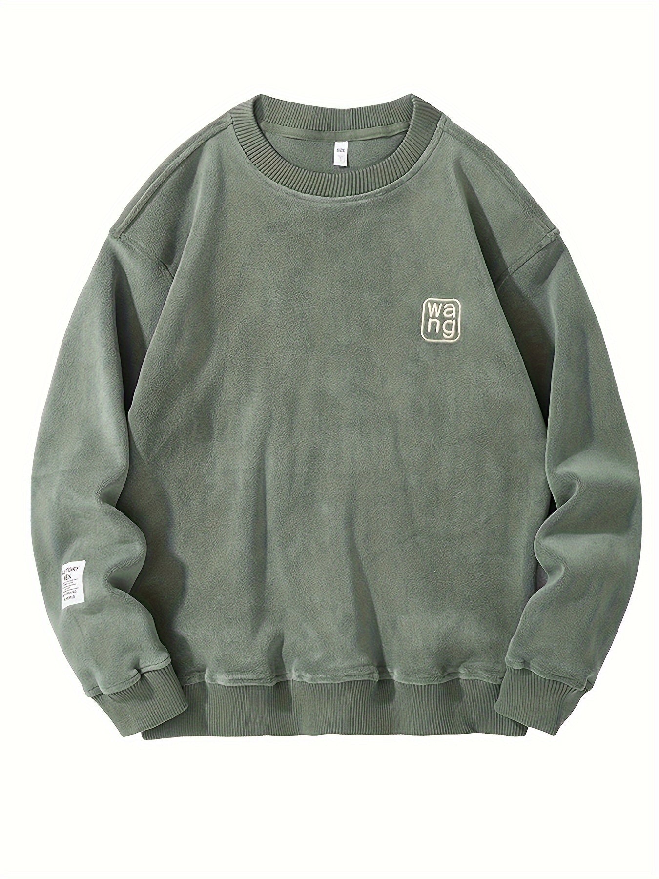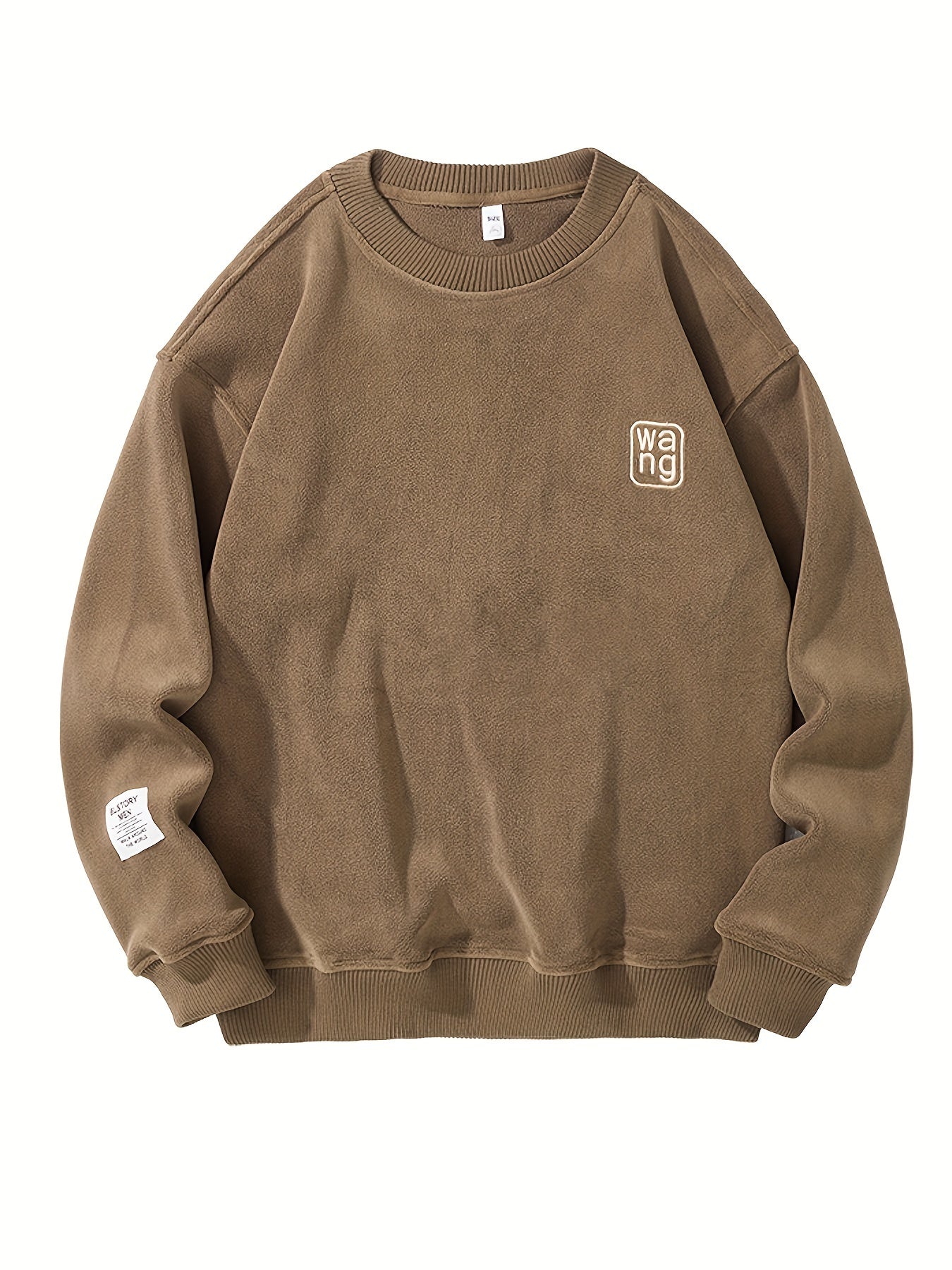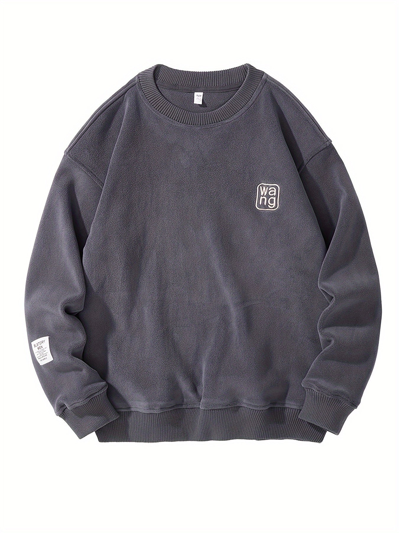 Casual Rund Hals Tröja med Broderad Bokstavsdesign för Herr | Ideal för Höst/Vinter