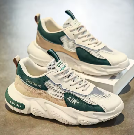 Dessa sneakers är en perfekt blandning av vintage och futuristisk design. Med en robust chunky sula, ventilerande mesh och stilfulla detaljer i grönt och beige, är detta en sneaker som passar lika bra för en dag på stan som en avslappnad dag i parken.