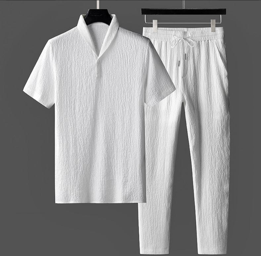 * Mångsidig användning: Bär setet tillsammans för en komplett och stilfull look, eller matcha delarna separat med andra plagg i din garderob. Skjortan passar utmärkt till ett par chinos eller jeans, och byxorna är perfekta för en avslappnad men chic stil.