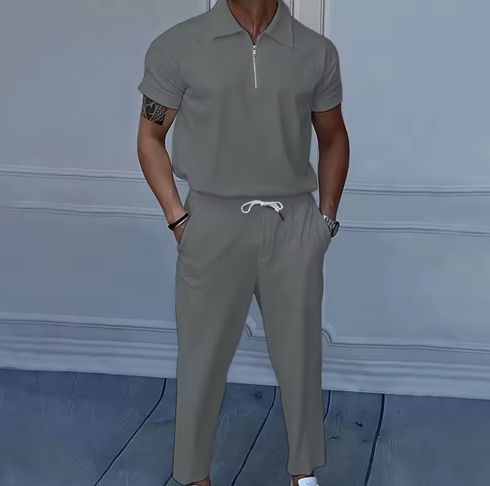 Elegant och Sportigt Zip-Set för Män - Mörkgrå