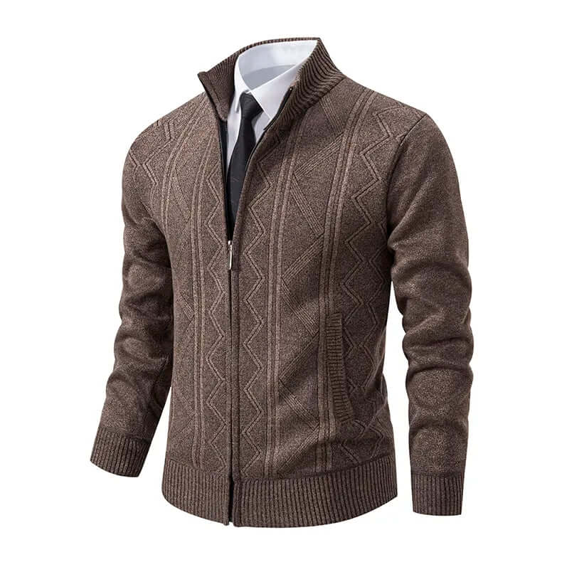 Denna stilrena stickade cardigan med dragkedja är ett perfekt tillskott till din garderob. Perfekt för svalare dagar, erbjuder den både värme och en elegant look. Oavsett om du matchar den med en skjorta för en sofistikerad stil eller bär den avslappnat över en t-shirt, passar den för alla tillfällen.