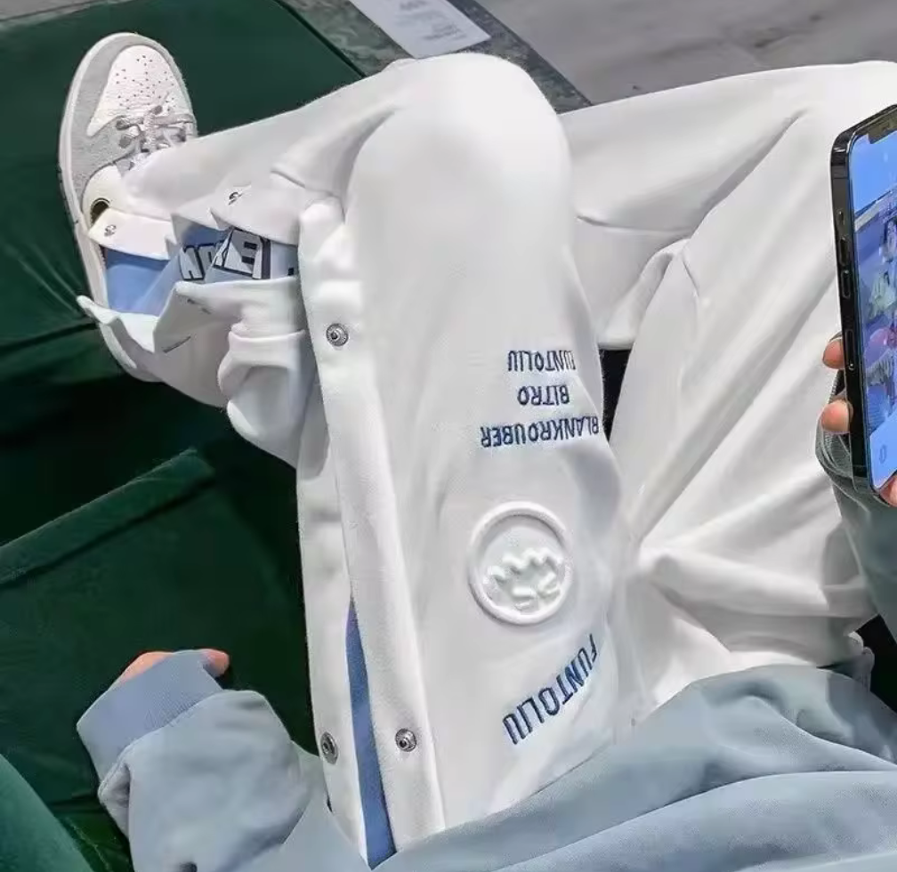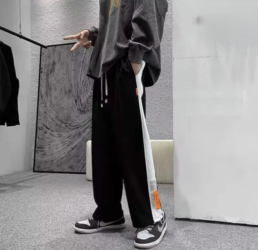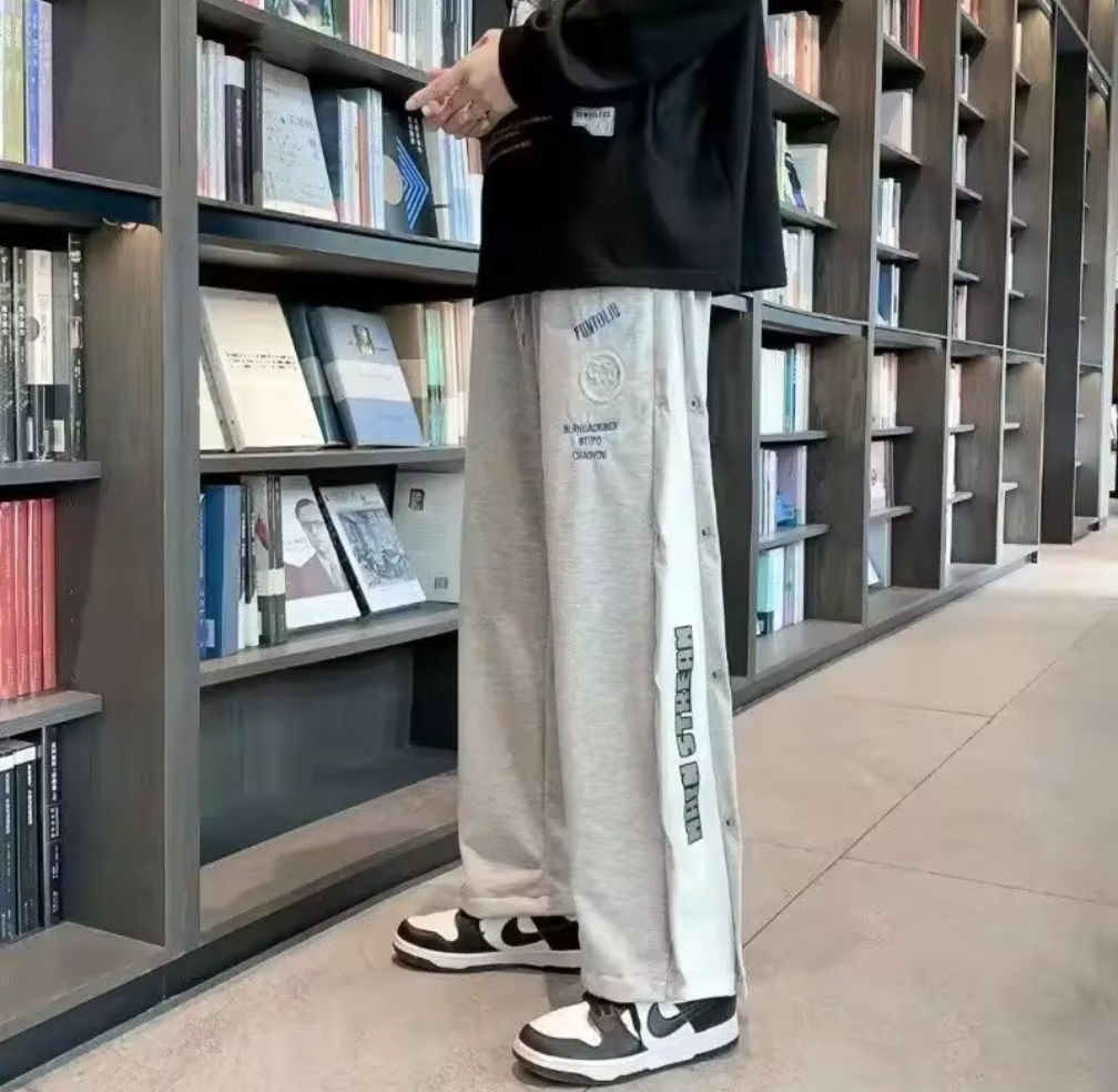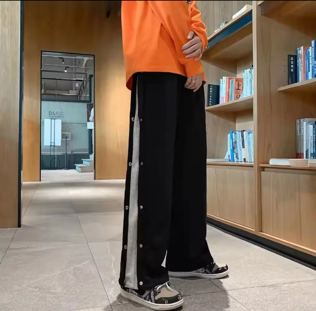 Streetwear-byxa med kontrastpanel och knappdetaljer – Svart, Grå, Vit