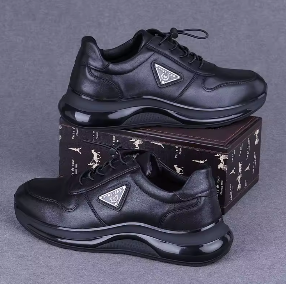 Svarta Sneakers i Läderlook – Stilren Lyx med Sportig Känsla