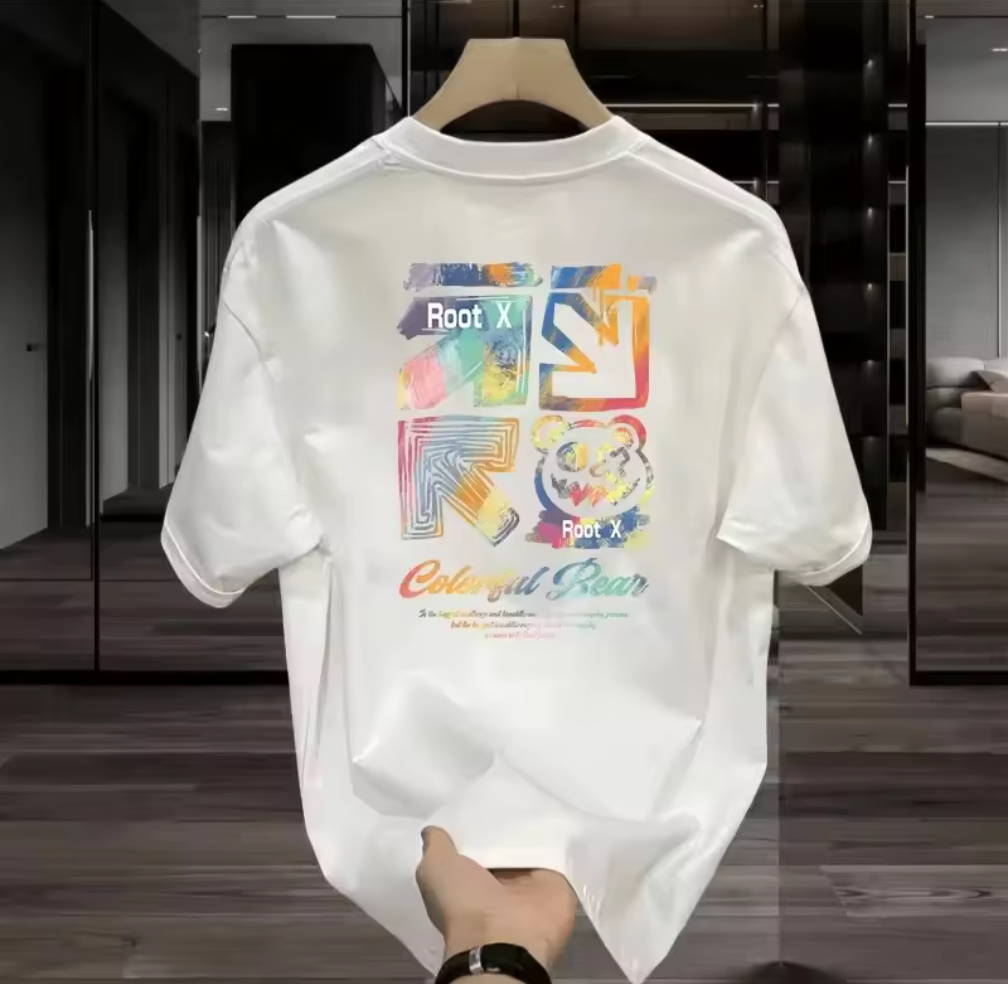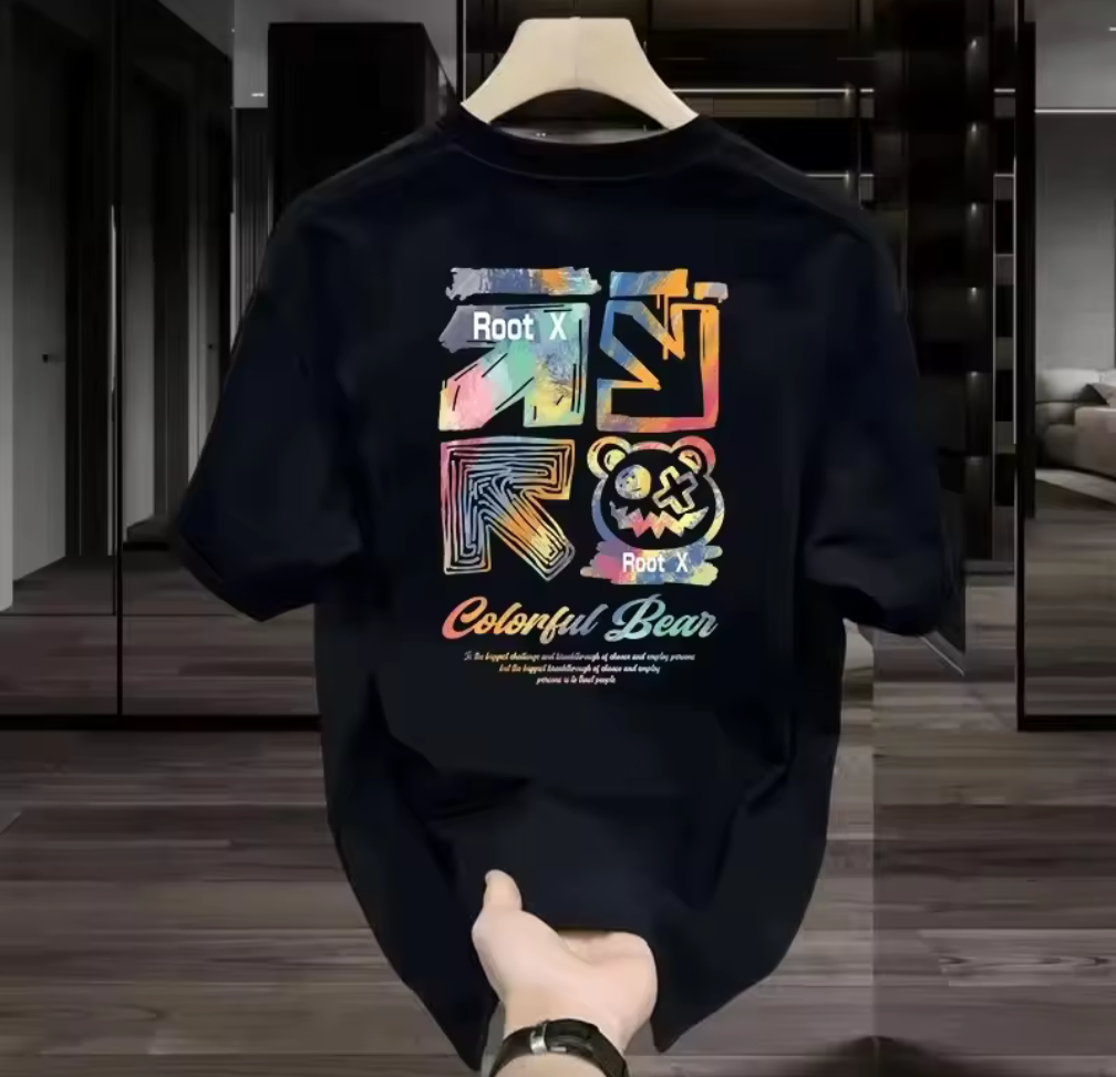 Gör ett uttryck med denna färgsprakande t-shirt från Root X – en perfekt mix av streetwear och lekfull kreativitet. Med ett färggrant tryck av abstrakta pilar, graffitilinjer och en karaktäristisk nalle i flera nyanser, ger denna t-shirt en urban look som sticker ut. Texten "Colorful Bear" tillsammans med subtila budskap på ryggen förstärker det konstnärliga intrycket. Framsidan pryds av en mindre version av den ikoniska nallen, vilket ger tröjan balans och stil.