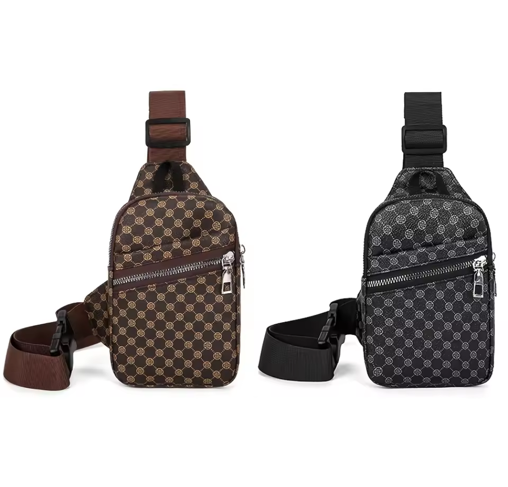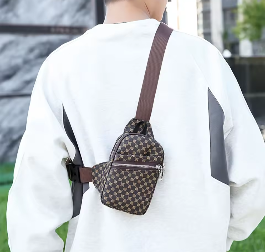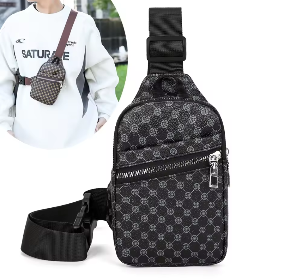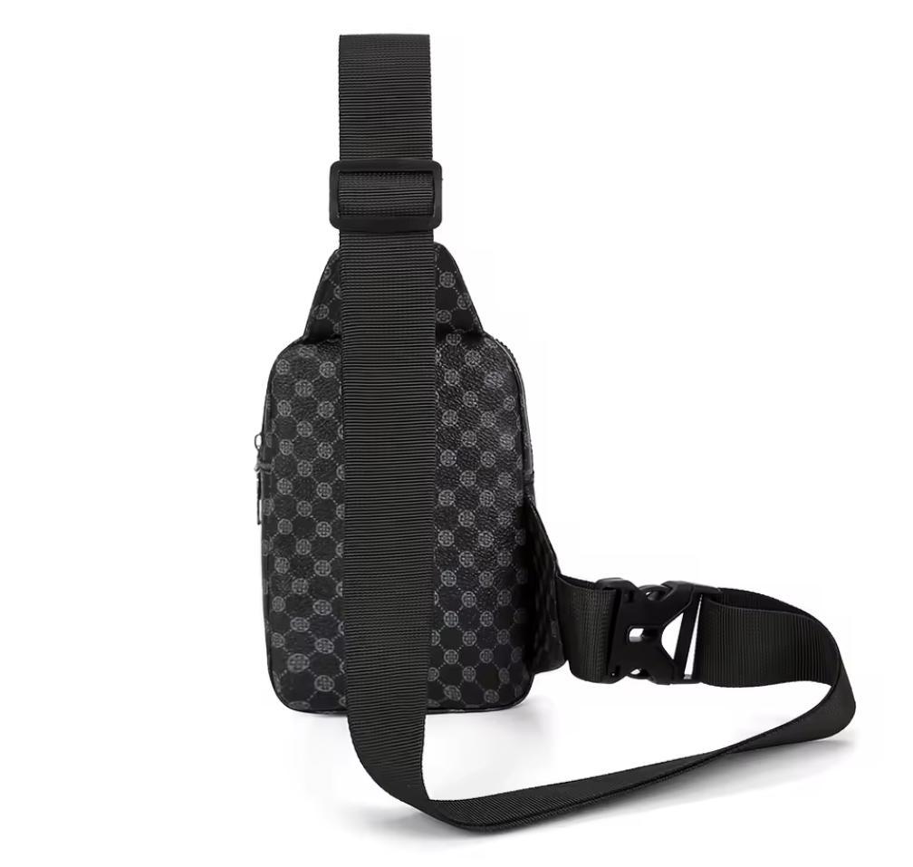 Gör ett statement med denna stilrena och kompakta crossbody-väska, perfekt för dig som vill kombinera trend med funktionalitet. Väskan har en smidig, kroppsnära design som bärs snett över bröstet eller ryggen – ett måste för dig som vill ha händerna fria och stilen på topp. Den slitstarka ytan i läderlook är dekorerad med ett monogrammönster som påminner om lyxdesign, och de blanka metallblixtlåsen ger ett exklusivt intryck. Väskan rymmer mobil, plånbok, nycklar och andra småsaker du behöver i farten – utan att kännas klumpig.