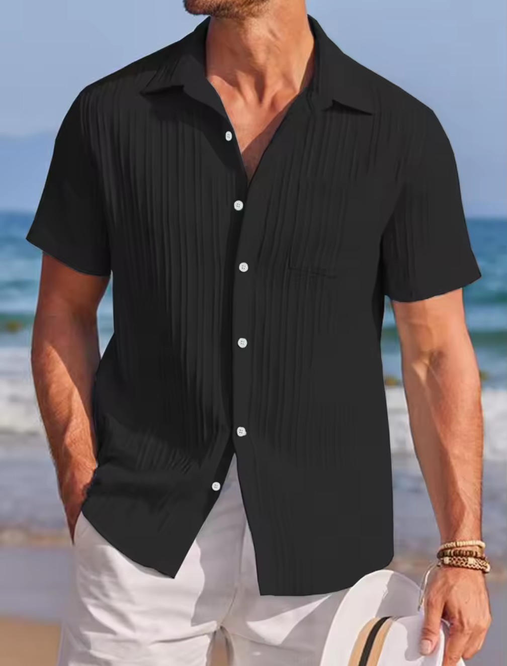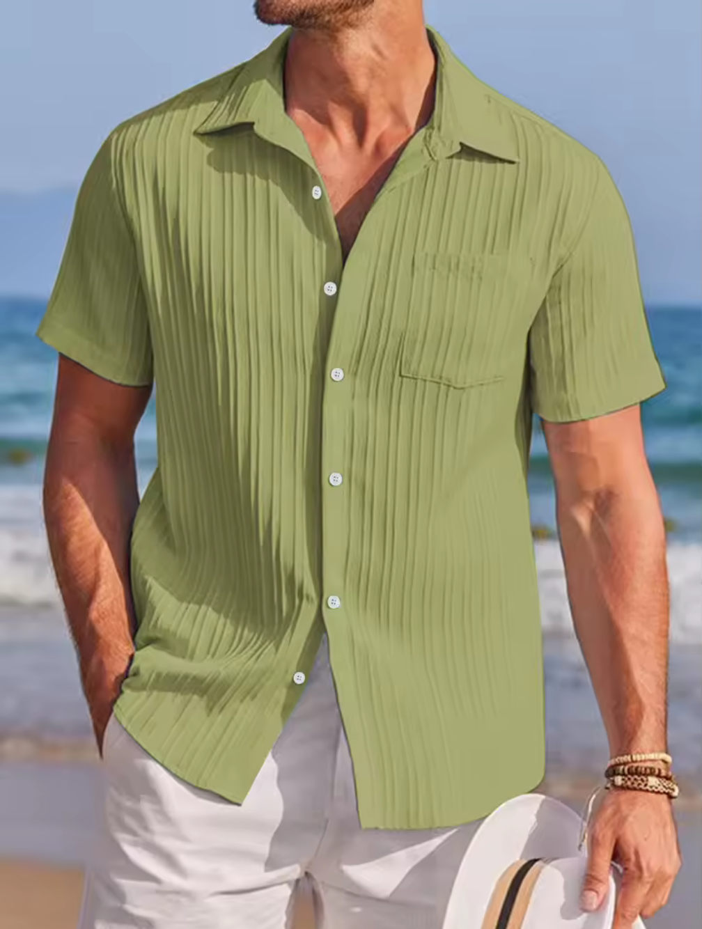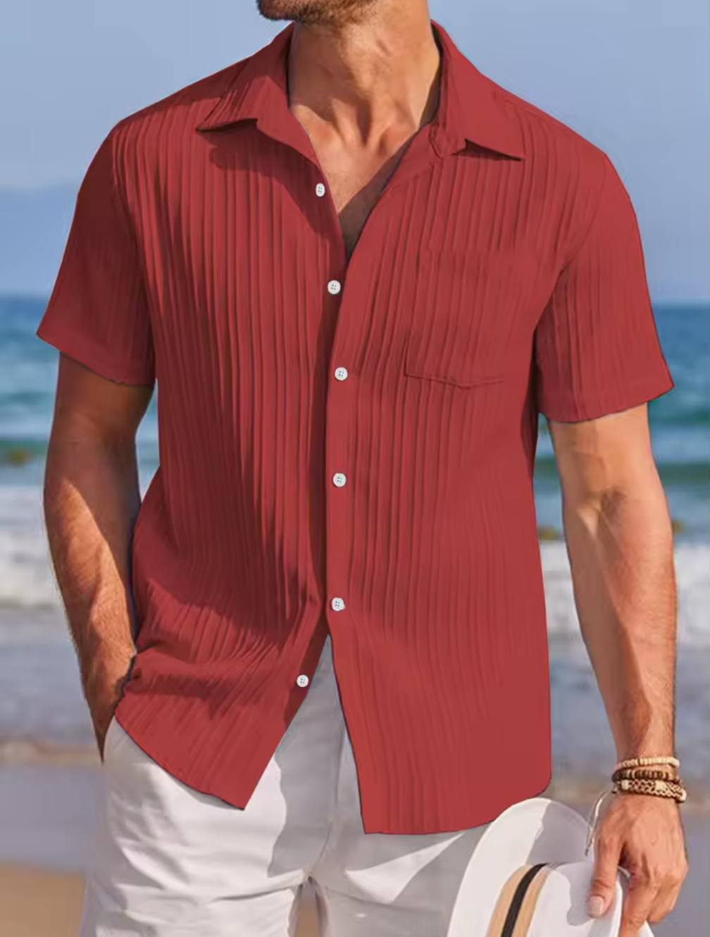 Vitali – Kortärmad Plisserad Skjorta för Herr 👔🌞